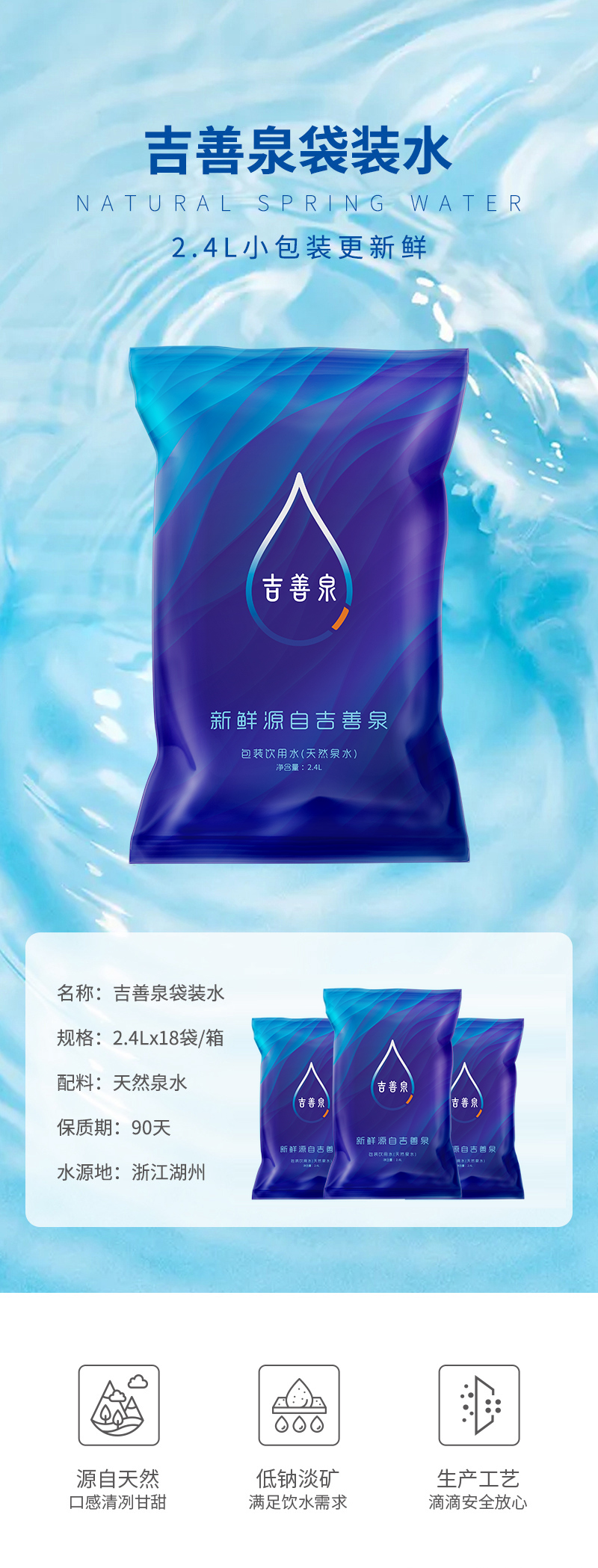 源自安吉竹海的饋贈(zèng),良好的生態(tài)環(huán)境,孕育出清冽甘甜的口感,滴滴鮮活,“袋”給全家泉心泉意的愛(ài)。