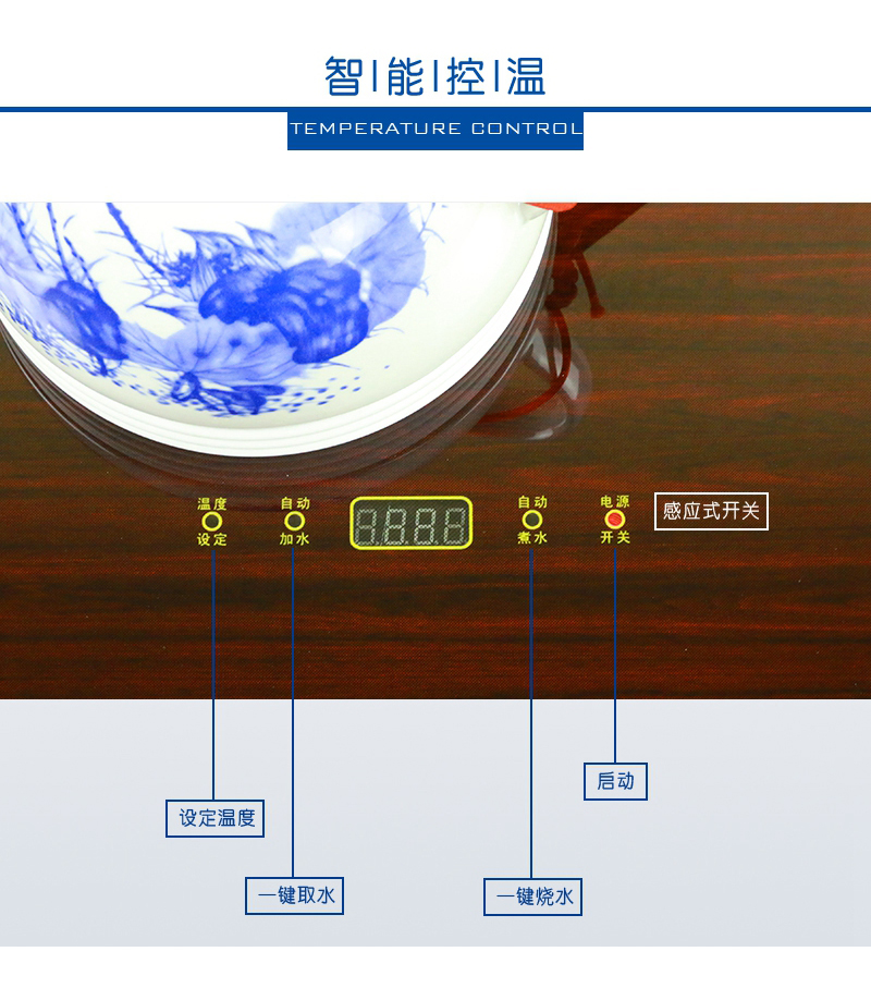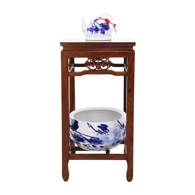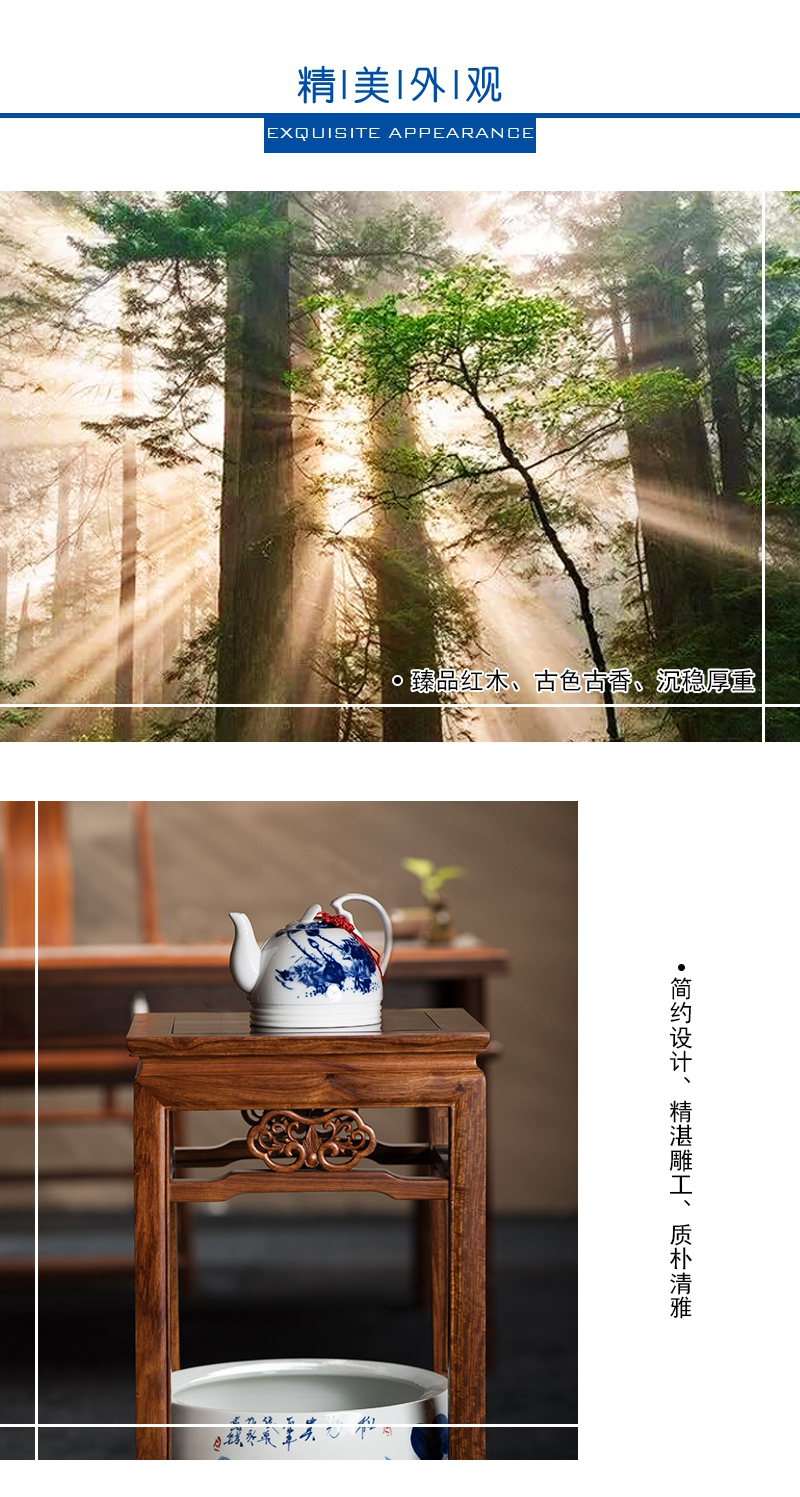 臻品花梨材質,古色古香、沉穩(wěn)厚重;陶瓷手繪壺、手繪缸,古典優(yōu)雅,光澤耐久。